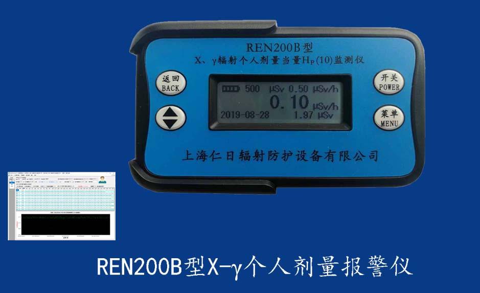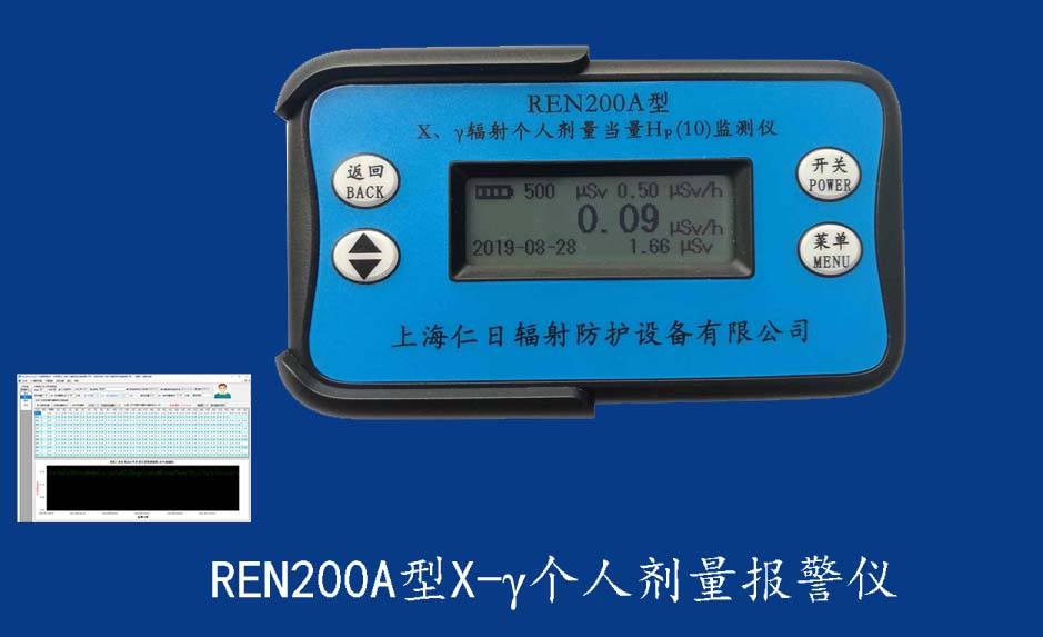 REN200 個人輻射監(jiān)測儀 REN200型X、γ個人劑量報警儀(又叫X、γ輻射個人劑量當量HP(10)監(jiān)測儀)內置高靈敏度蓋格計數(shù)管為探測器,主要用來監(jiān)測各種放射性工作場所的X、γ以及硬β射線的輻射,具有響應快,測量范圍寬的特點。能顯示工作場所的劑量當量率和累積劑量,更換電池時,日期及累積數(shù)據(jù)能永久保存?蛇x配RenRiPersonal個人劑量管理軟件,該軟件可存儲多個人的歷史數(shù)據(jù),能記錄日累積、月累積、年累積、輻照時長、計算平均劑量率、扣除或不扣除本底輻射,且以文字和圖譜的方式展現(xiàn)數(shù)據(jù)。廣泛應用于核電站、加速器、鋼鐵、化工、同位素應用、醫(yī)院、工業(yè)X、γ無損探傷、放射醫(yī)療、鈷源治療、γ輻照、放射性實驗室、核設施周圍環(huán)境監(jiān)測